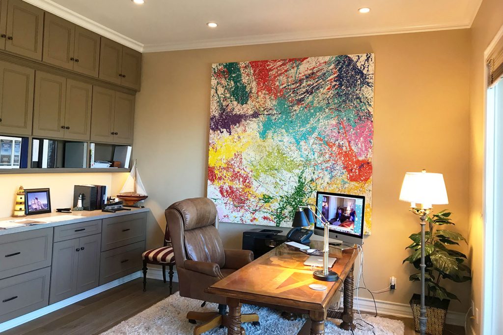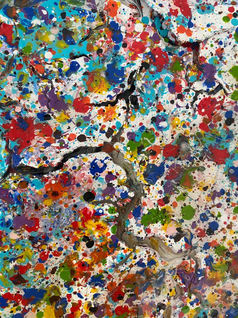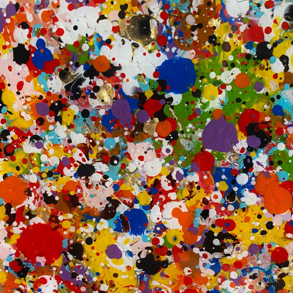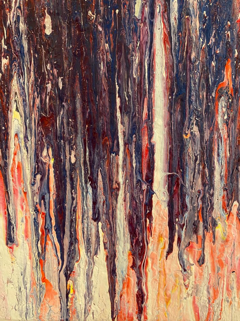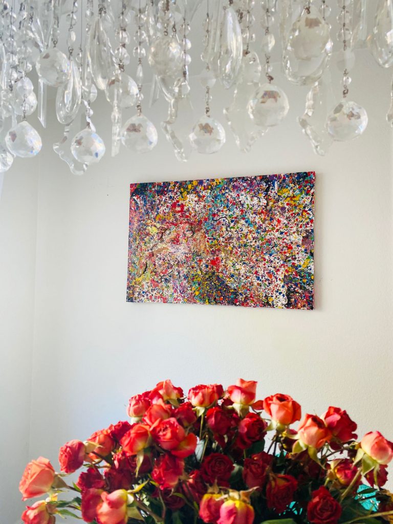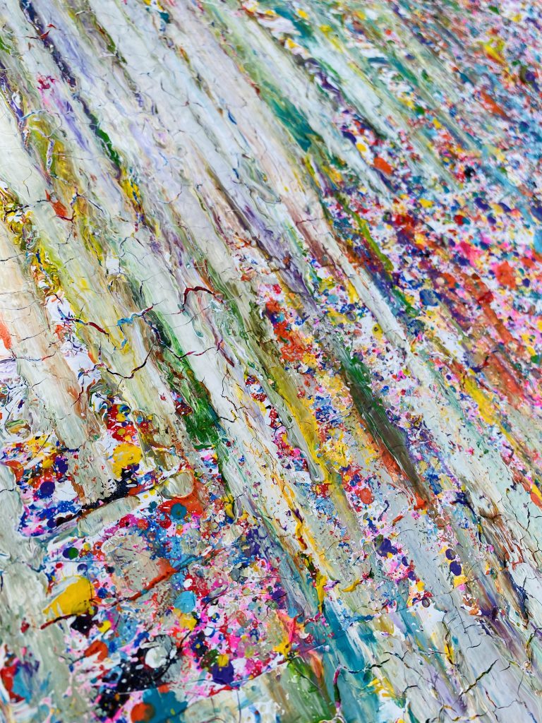 Heavy layering is used to create texture and depth, while droplets and splatters of paint express energy and movement. Each piece is intended to spark emotion, and light up a room.